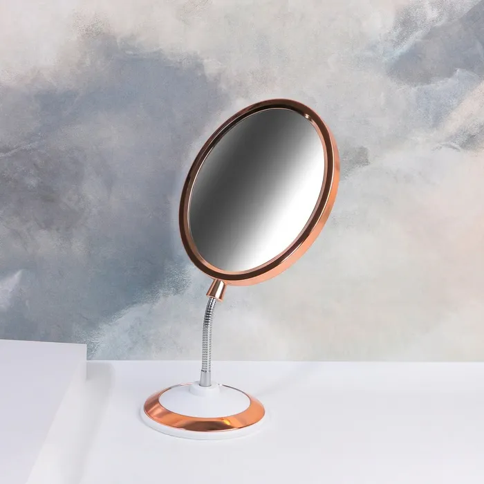 Зеркало украсит туалетный столик и поможет в ежедневном уходе за собой. Благодаря гибкой ножке вы легко отрегулируете положение линзы и расположите её под нужным углом.