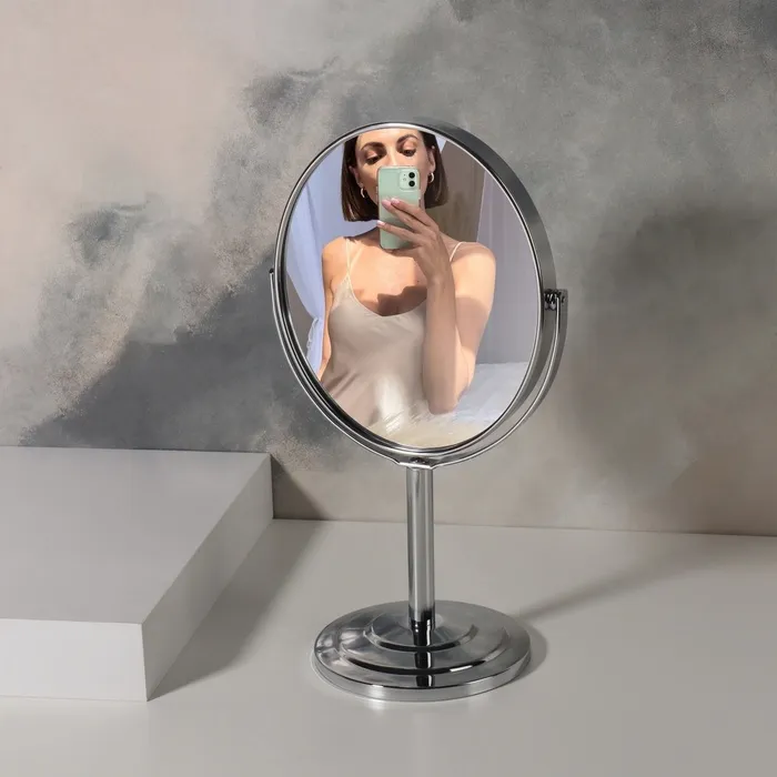 Зеркало на ножке «Овал», двустороннее, с увеличением х2, зеркальная поверхность 12.5×14 см, серебристое — Характеристики