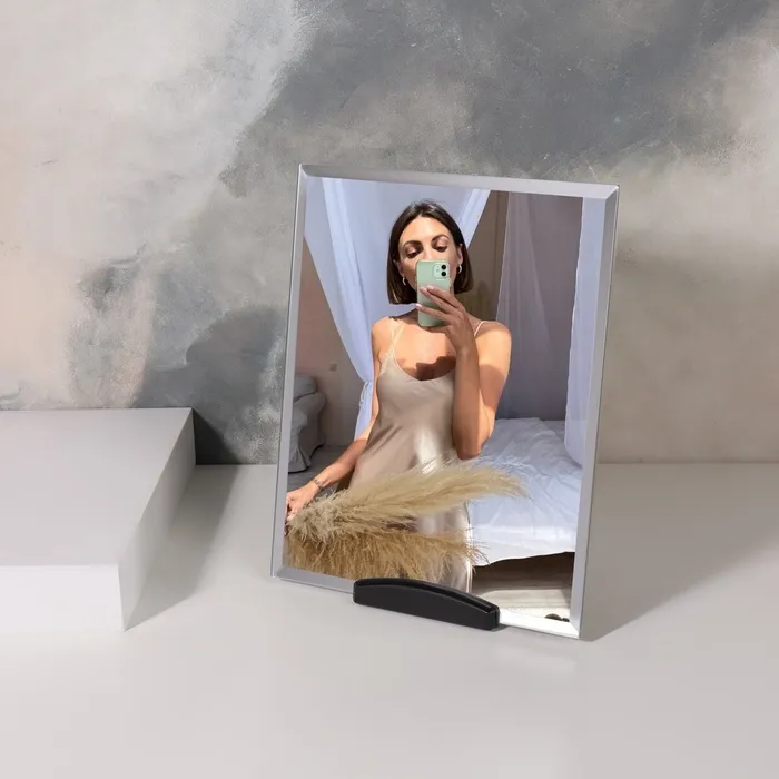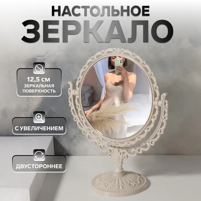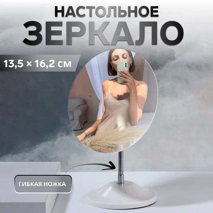 Изящное зеркало на подставке — украшение для туалетного столика. Конструкция не расшатывается и устойчиво держится на поверхности. Аксессуар с минималистичным дизайном впишется в интерьер и станет его гармоничным дополнением.