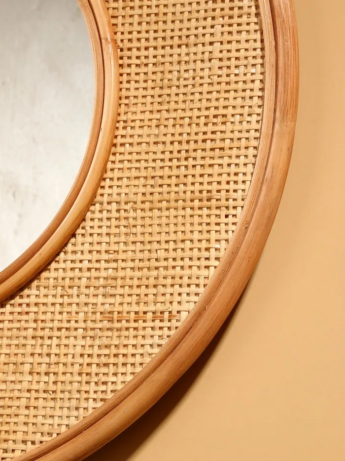 - Природная элегантность: рама из ротанга с бежевым оттенком добавляет изделию естественной теплоты и уюта, что особенно ценно в современных интерьерах.