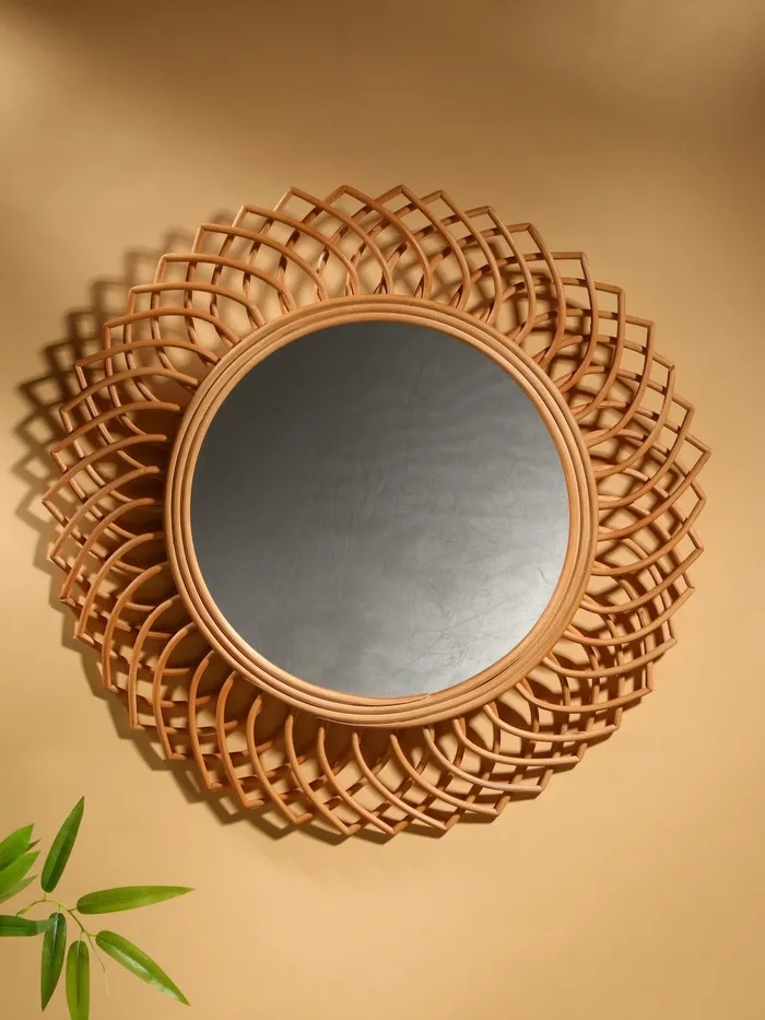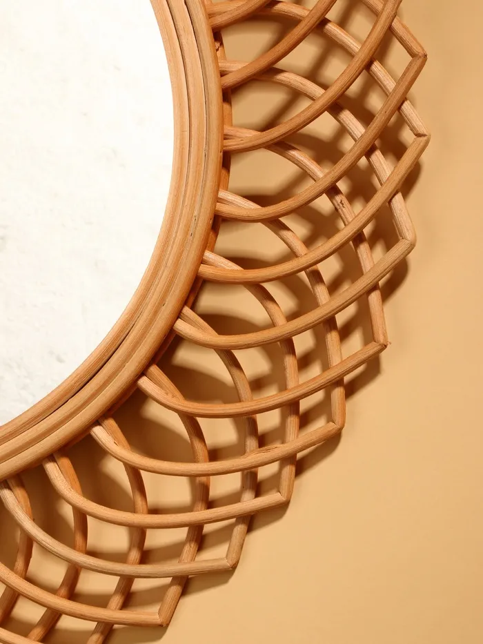 Круглое зеркало в ротанговой раме добавит уюта и естественного тепла в интерьер. Бежевый оттенок плетёного обрамления гармонично сочетается с большинством стилей — от прованса до современной классики. Стеклянная поверхность с чёткими гранями отражает свет, визуально расширяя пространство.