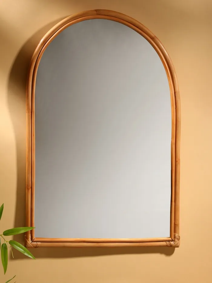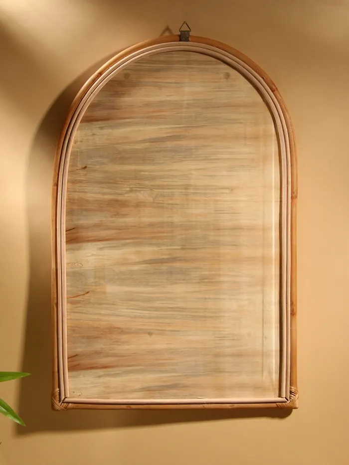 Представьте себе акцент, который превратит обычную стену в произведение искусства — настенное зеркало с ротанговой рамой. Его фигурная форма и натуральные материалы создают теплую, уютную атмосферу, а бежевый оттенок рамы гармонично впишется в интерьер в стиле прованс, кантри или бохо.