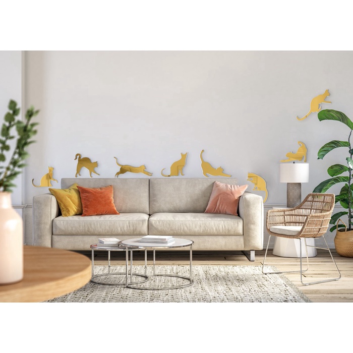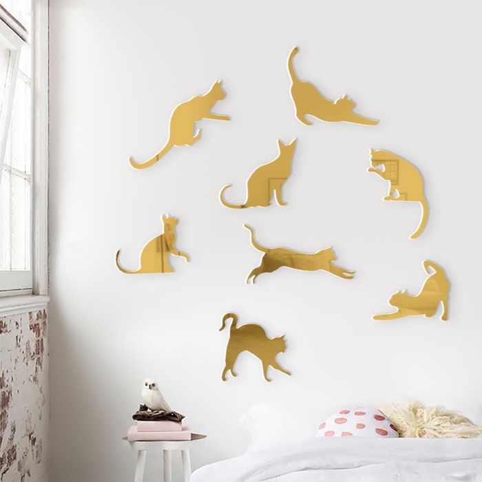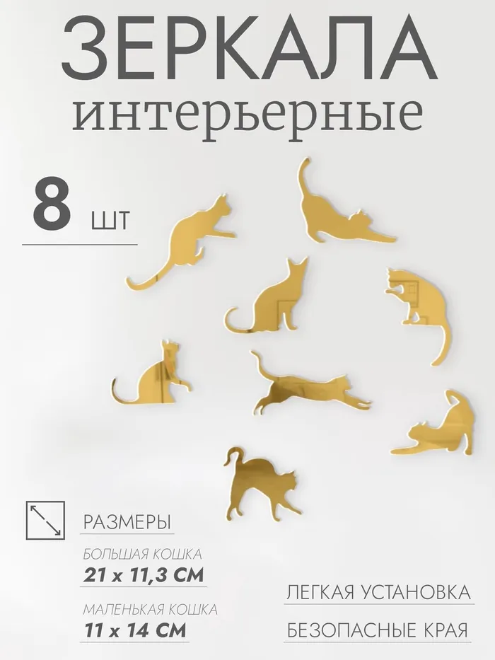 Зеркало настенное «Котики», на клеевой основе, акриловое, 8 шт., разный размер, цвет золотой — Характеристики