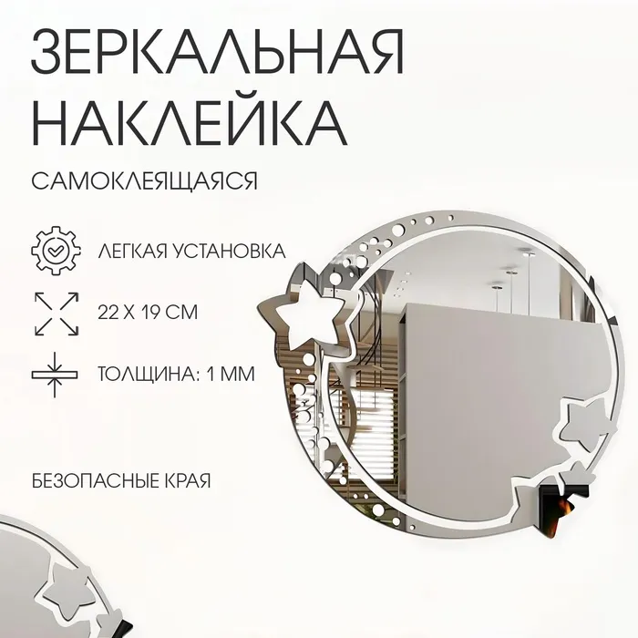 Зеркало настенное, наклейки интерьерные, зеркальные, декор на стену, панно 22х19 см — Характеристики