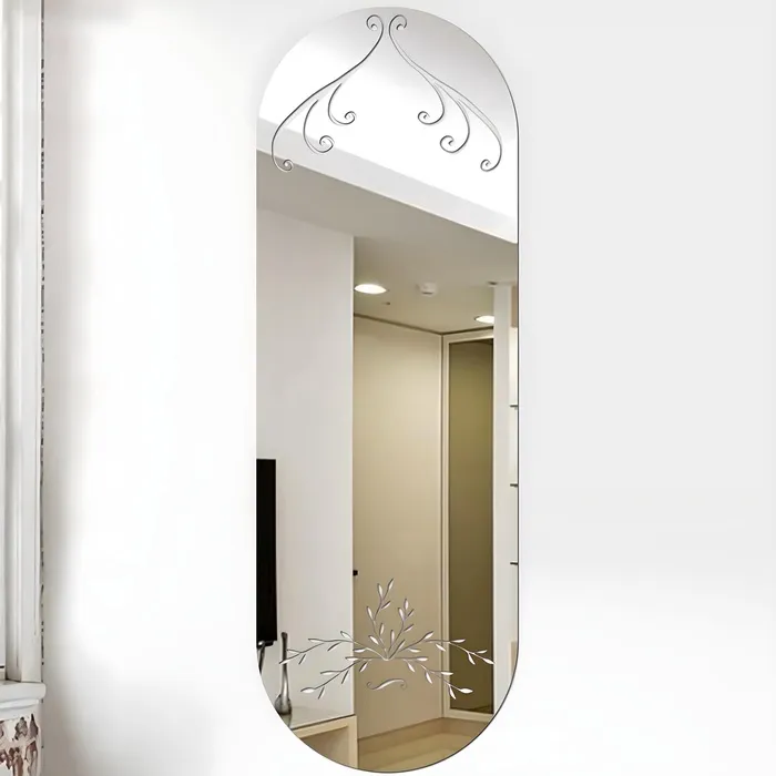 Зеркало настенное в форме вытянутого овала (размеры 45 х 15 см) – это стильный и оригинальный элемент декора, который подчеркнет индивидуальность вашего интерьера. Изготовленное из акрила толщиной 1 мм, оно отличается легкостью и прочностью, обеспечивая длительный срок службы.
