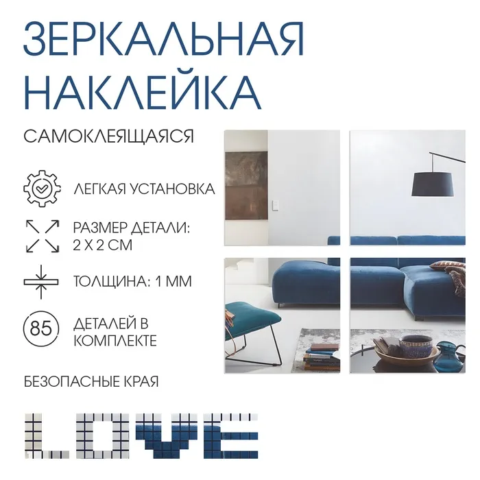 Зеркало настенное, наклейки интерьерные, зеркальные, декор на стену, панно 45х15 см — Характеристики