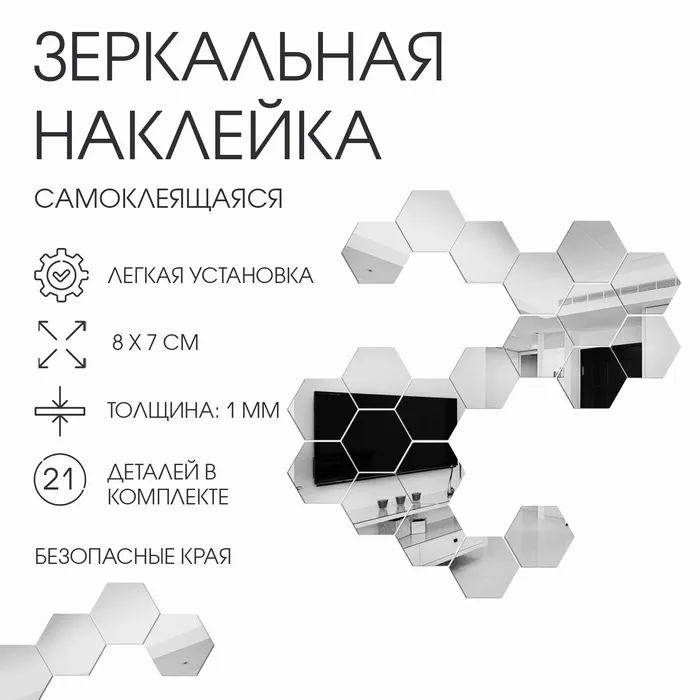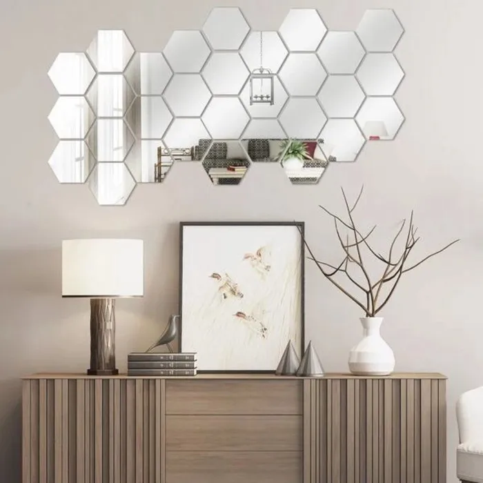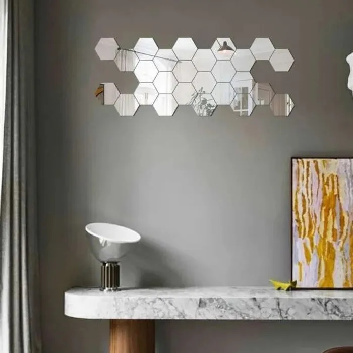 Познакомьтесь с декоративными шестиугольными зеркалами, идеальными для создания стильного и современного интерьера. Эти модульные акриловые элементы обладают зеркальной поверхностью, добавляющей глубину и уникальный дизайн вашему пространству. Их шестигранная форма и лёгкость монтажа пленкой создают многочисленные возможности для творческого оформления.
