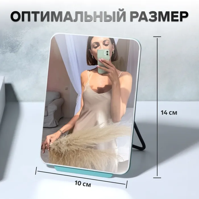 Зеркало настольное, 10×14 см, бирюзовое — Характеристики