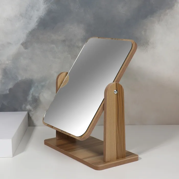 Изящное зеркало на подставке — украшение для туалетного столика. Конструкция не расшатывается и устойчиво держится на поверхности. Аксессуар из дерева гармонично впишется в интерьер и станет его стильным дополнением.