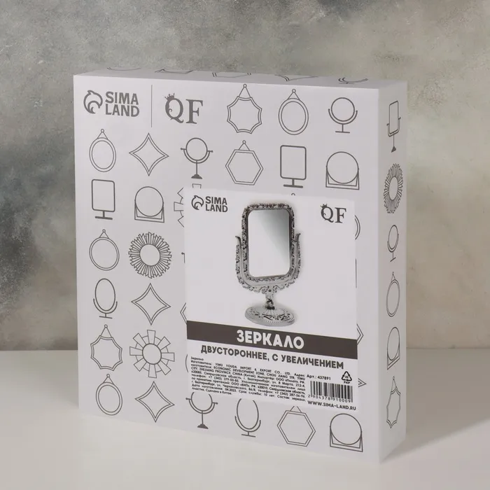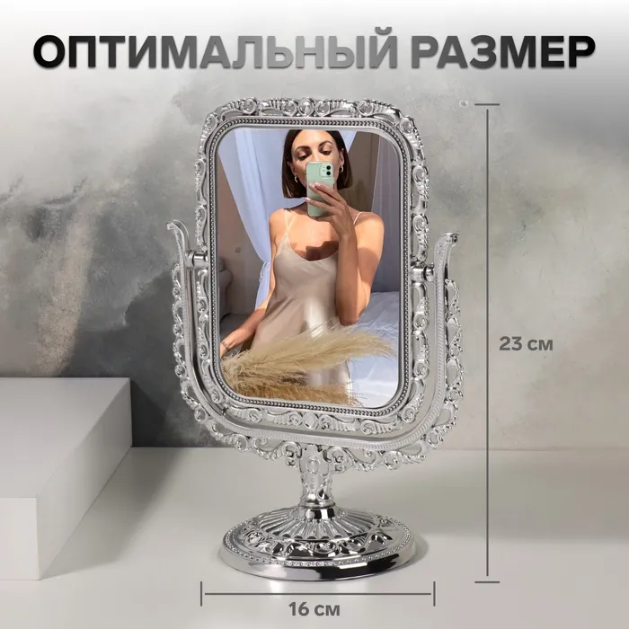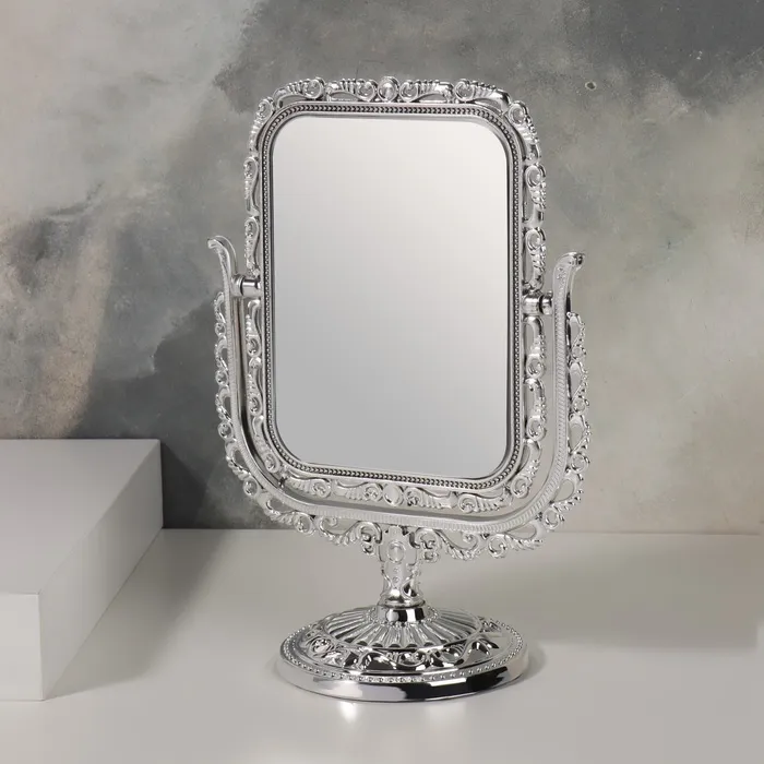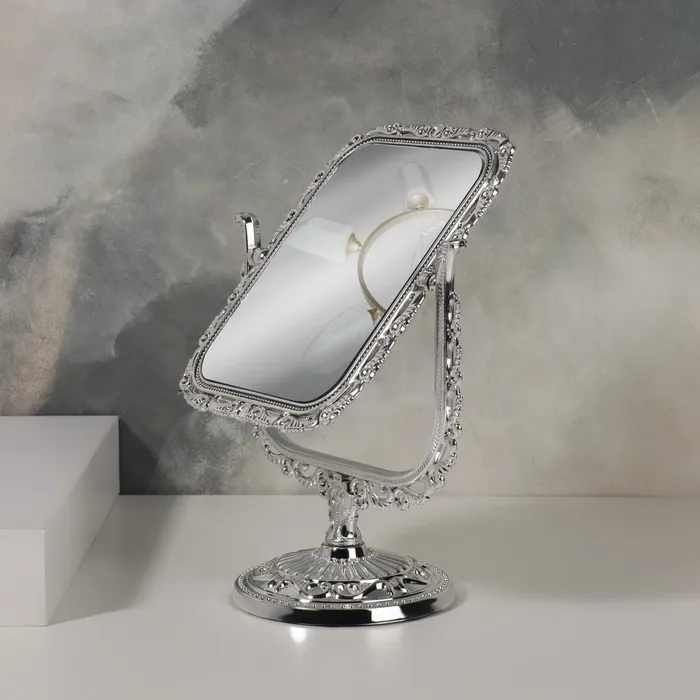 Зеркало настольное, двустороннее, с увеличением х2, зеркальная поверхность 10.5×14.5 см, серебристое — Характеристики