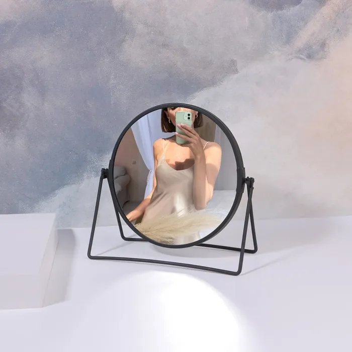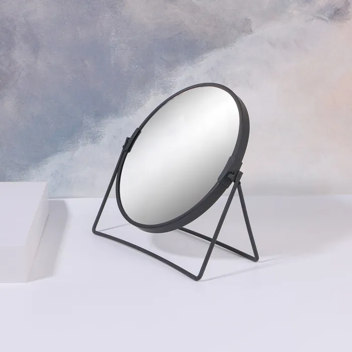 Зеркало настольное «Круг», двустороннее, с увеличением, d зеркальной поверхности 16 см, цвет чёрный — Характеристики