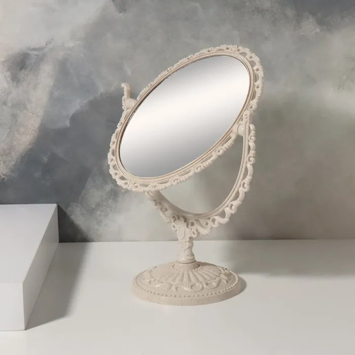 Зеркало настольное «Круг», двустороннее, с увеличением х2, d зеркальной поверхности 12.5 см, бежевое — Характеристики