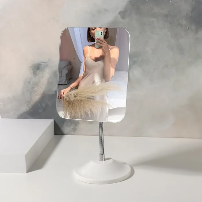 Зеркало настольное, на гибкой ножке, зеркальная поверхность 13.5×16.5 см, в коробке, белое — Характеристики