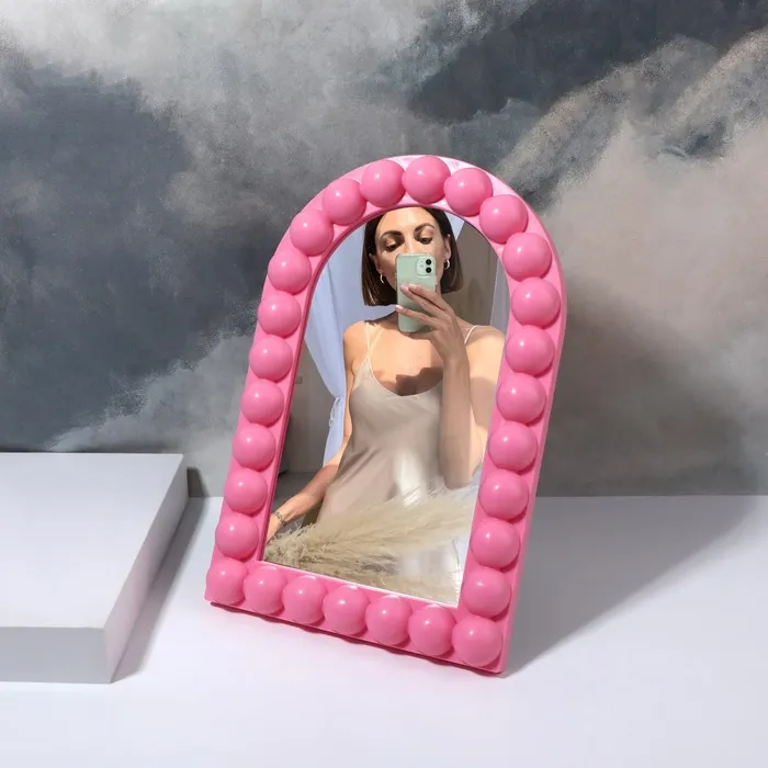 Зеркало настольное «Овал», 19.5×29.5×2.5 см, розовое