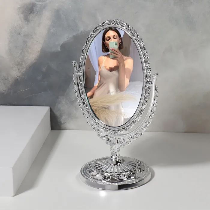 Зеркало настольное «Овал», двустороннее, с увеличением х2, зеркальная поверхность 9×12 см, серебристое — Характеристики