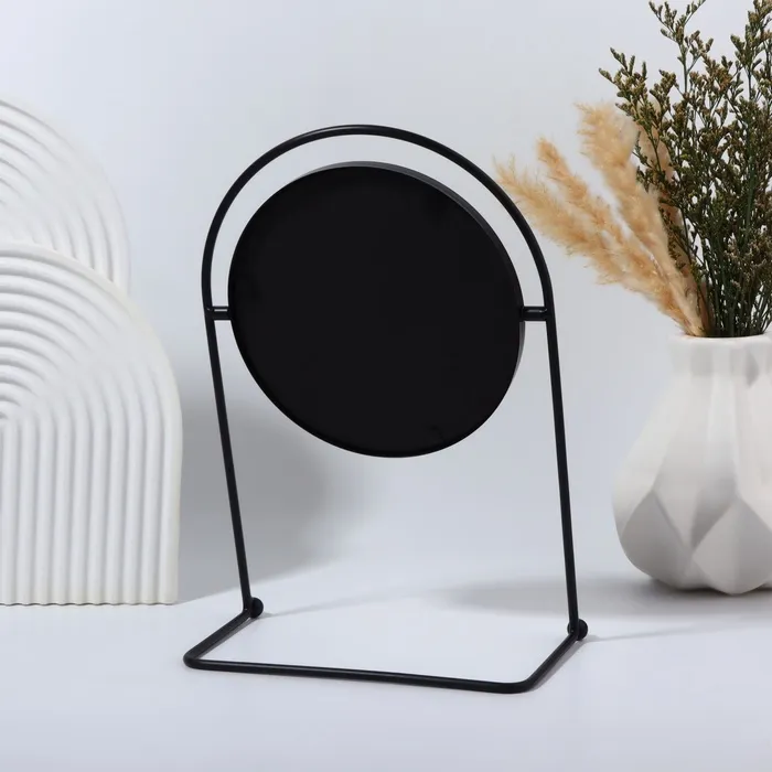 Подставка зеркала обеспечит надежную устойчивость, позволяя удобно использовать его для нанесения макияжа, причесок или просто для визуального контроля своего внешнего вида. Размер зеркала позволяет увидеть не только лицо, но и частично верхнюю часть тела, что особенно удобно при укладке волос или использовании аксессуаров.