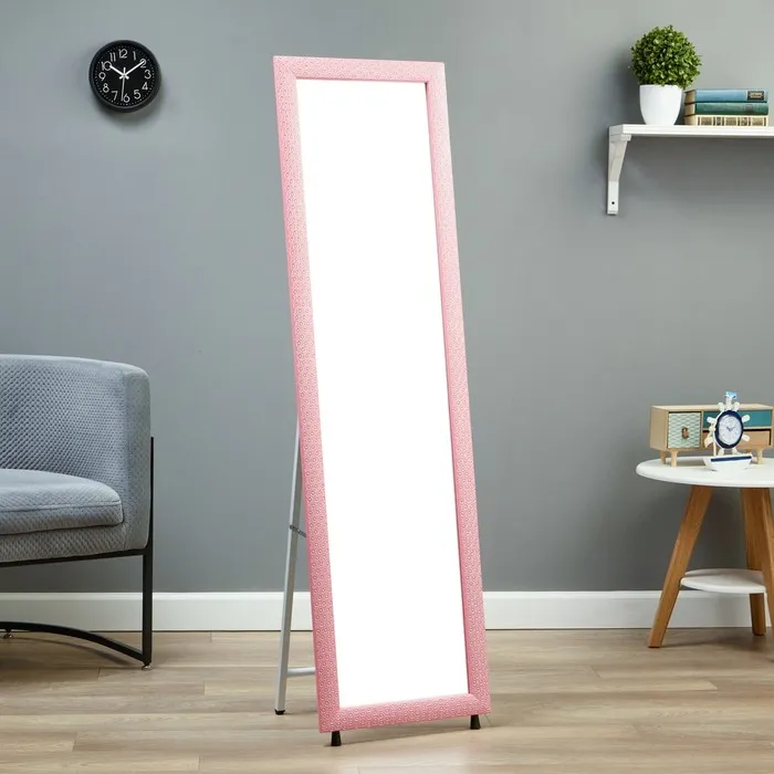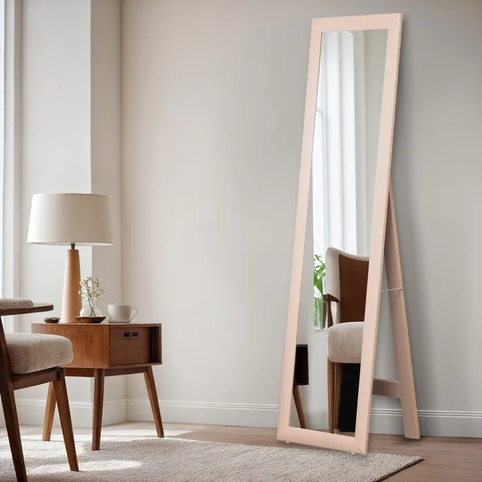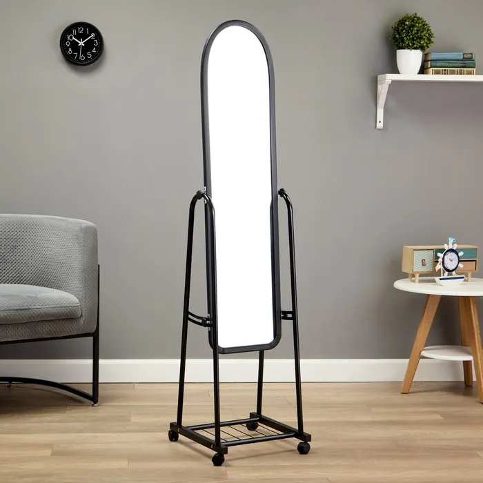 Дизайн: Напольное зеркало впечатляет своей овальной формой и стильным цветом, придавая интерьеру изысканный вид.