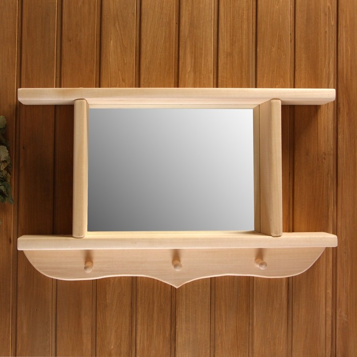 Зеркало резное, 70×45×10 см, настенное, 2 полки, 3 крючка, «Добропаровъ»