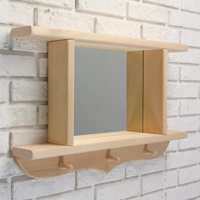Зеркало резное, 70×45×10 см, настенное, 2 полки, 3 крючка, «Добропаровъ» — Характеристики