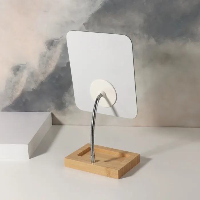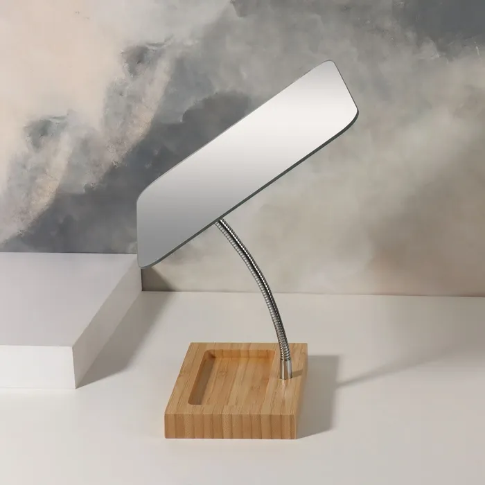 Изящное зеркало на подставке из бамбукового дерева — это украшение для туалетного столика. Оно поможет вам ежедневно следить за собой, наносить макияж и поправлять причёску.