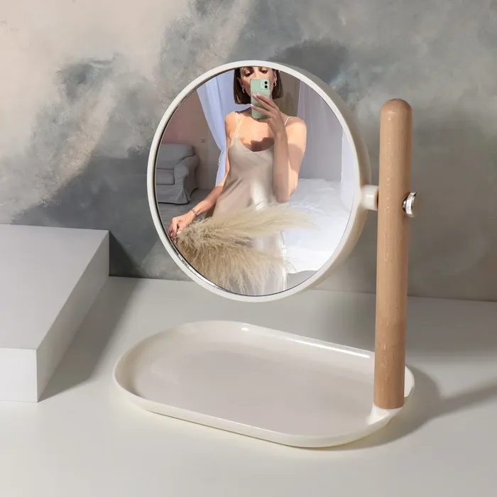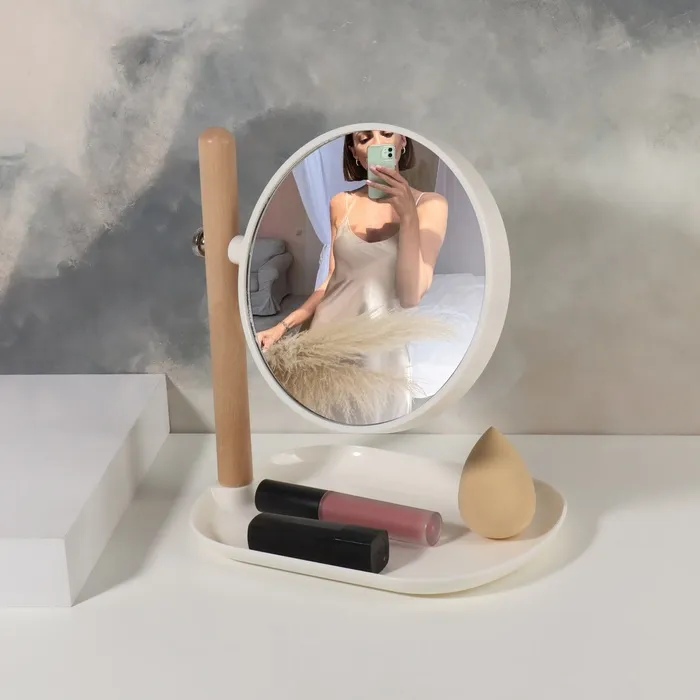 Изящное зеркало — это украшение для туалетного столика. Оно помогает нам ежедневно следить за собой, наносить макияж и поправлять причёску. Подставка станет удобным местом хранения ваших косметических принадлежностей и украшений. Аксессуар гармонично впишется в интерьер и станет его стильным дополнением.
