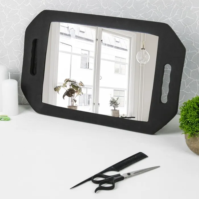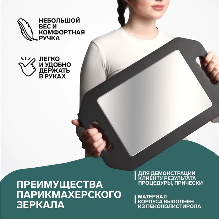 Зеркало с ручками для парикмахеров представляет собой компактный и удобный инструмент, который поможет профессионалам в сфере парикмахерского искусства проводить качественные процедуры ухода за волосами. Его зеркальная поверхность имеет размеры 10,5 × 14 см, что обеспечивает отличную видимость и позволяет осуществлять детальный контроль за работой. Черный цвет каркаса придает зеркалу стильный и современный внешний вид, а также делает его устойчивым к загрязнениям. Ручки обеспечивают удобство в использовании, позволяя уверенно удерживать зеркало в руке во время работы.