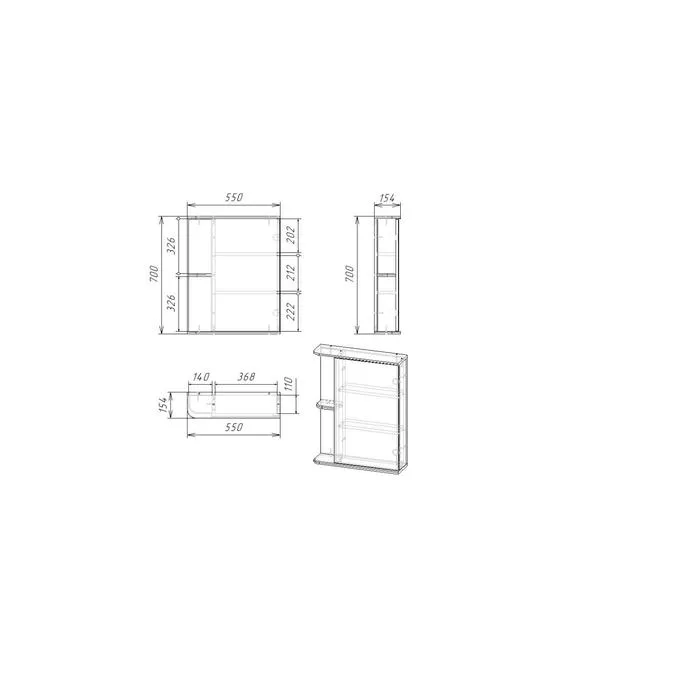 Зеркало-шкаф для ванной комнаты "Тура 5500", с двумя полками, 55 х 15,4 х 70 см — Характеристики