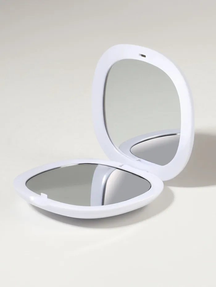 Компактное косметическое зеркало с двумя зеркальными поверхностями. Оно просто необходимо людям, использующим линзы на постоянной основе, чтобы при необходимости сразу устранить возникшую проблему. Карманный, дорожный вариант зеркала можно взять с собой в путешествие, поэтому вы сможете увидеть даже самые мелкие детали макияжа находясь в любой точке мира. Благодаря складному механизму зеркальная поверхность не повредится.