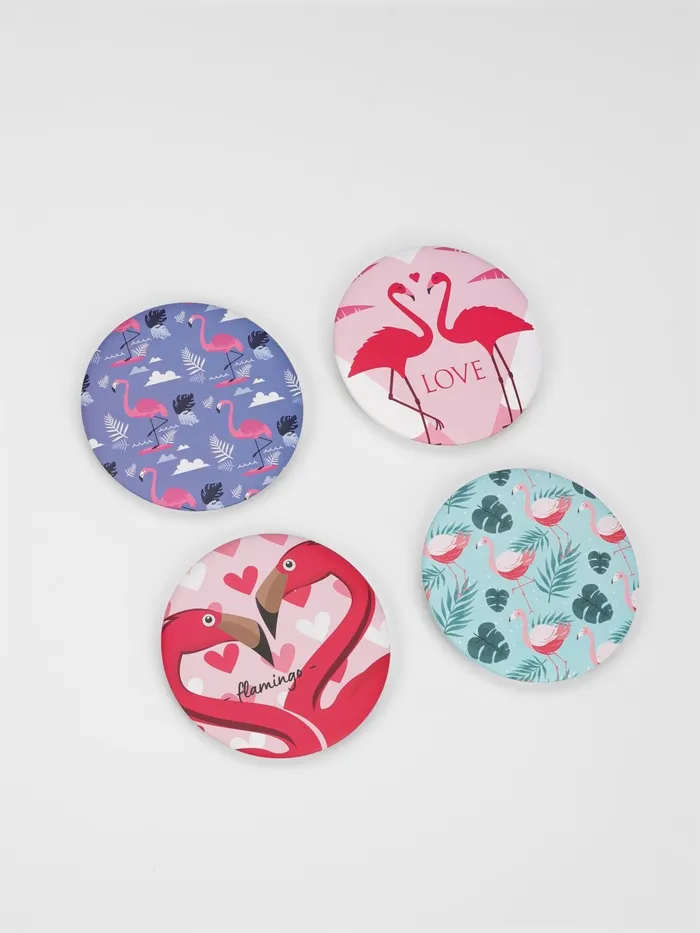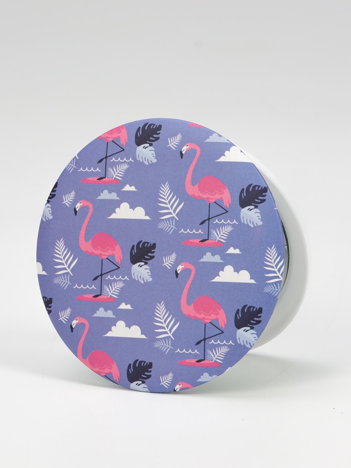 Компактное складное зеркало с изображением фламинго — стильный и практичный аксессуар для повседневного использования. Круглая форма диаметром 7,5 см и пластиковый корпус делают его лёгким и удобным для хранения в сумочке или косметичке. Разнообразие рисунков в миксе оттенков придаёт изделию индивидуальность и подходит для разных возрастов и поводов.