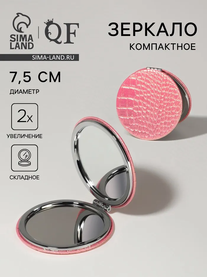 Зеркало складное «Крокодил», d = 7,5 см, цвет розовый — Характеристики