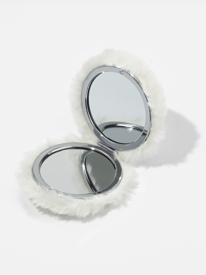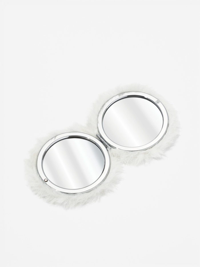 Портативное зеркальце с меховой отделкой — это ваш незаменимый спутник в любом путешествии. Это изысканное зеркало с диаметром всего 8 см станет любимым аксессуаром в вашей сумочке. Белоснежный искусственный мех придаёт зеркальцу стильный и уютный вид, а его компактные размеры позволяют легко взять его с собой куда угодно.
