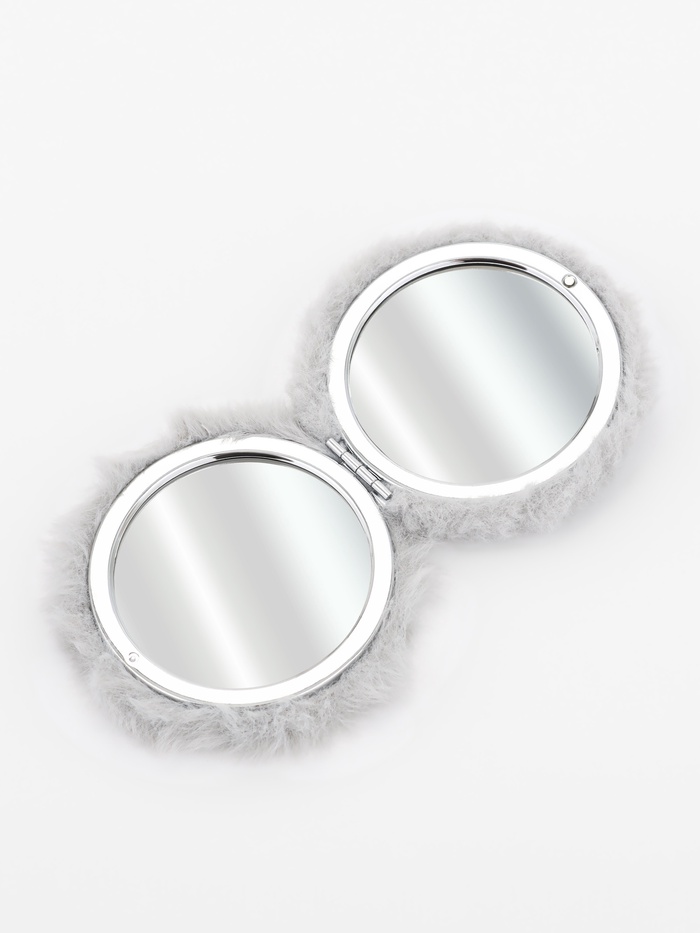 Компактное круглое зеркало с искусственным мехом — изящный аксессуар, который добавит стиль в ваш повседневный уход и станет полезным спутником в любой поездке. Обладая удобным диаметром 8 см, это портативное зеркало легко помещается в сумочке или кармане. Его благородный серый оттенок подчеркнёт вашу утонченность.