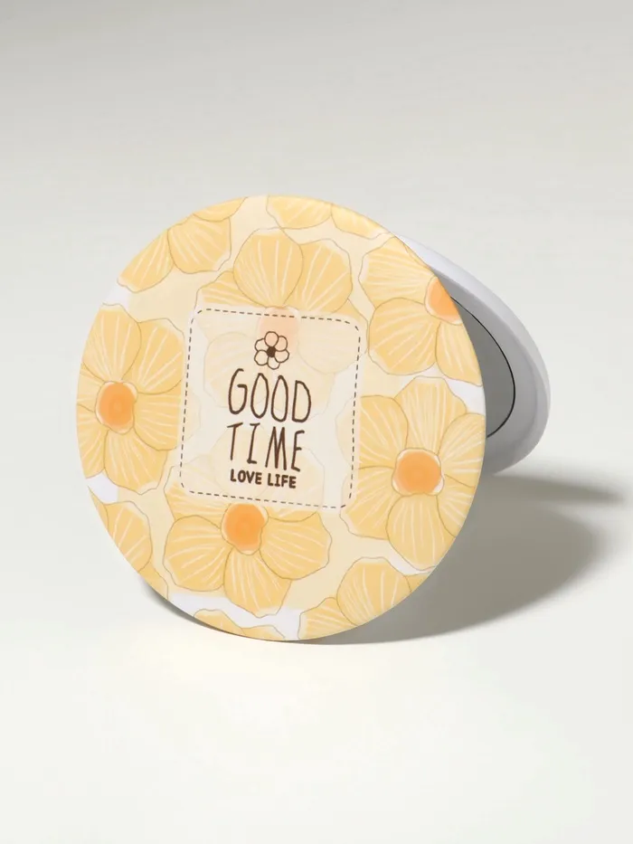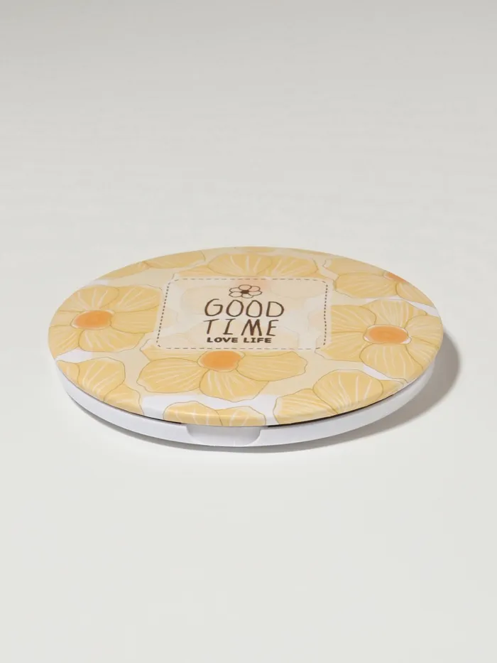 Зеркало складное «Нежность», d=7.5 см, с увеличением х2, жёлтое