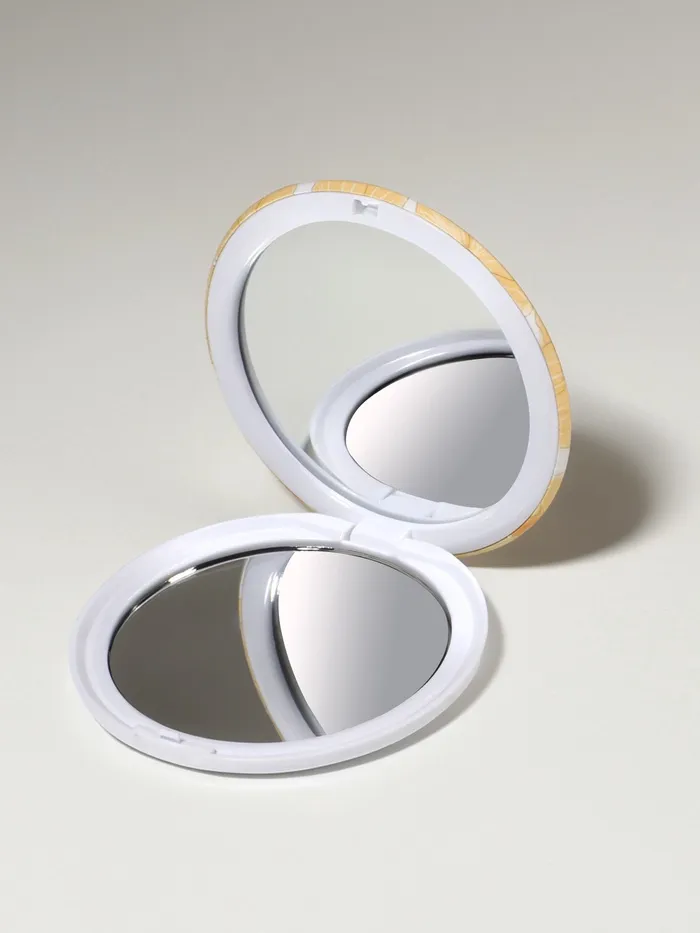 Компактное косметическое зеркало с двумя зеркальными поверхностями. Оно просто необходимо людям, использующим линзы на постоянной основе, чтобы при необходимости сразу устранить возникшую проблему. Карманный, дорожный вариант зеркала можно взять с собой в путешествие, поэтому вы сможете увидеть даже самые мелкие детали макияжа находясь в любой точке мира. Благодаря складному механизму зеркальная поверхность не повредится.