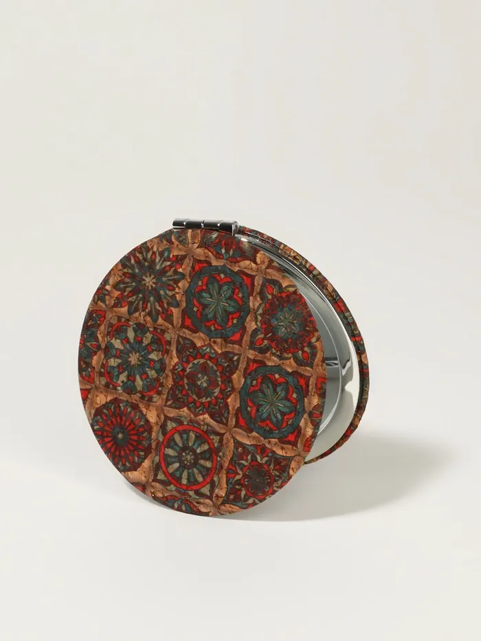 Зеркало складное «Орнамент», d=7.2 см, с увеличением х2, коричневое/оранжевое