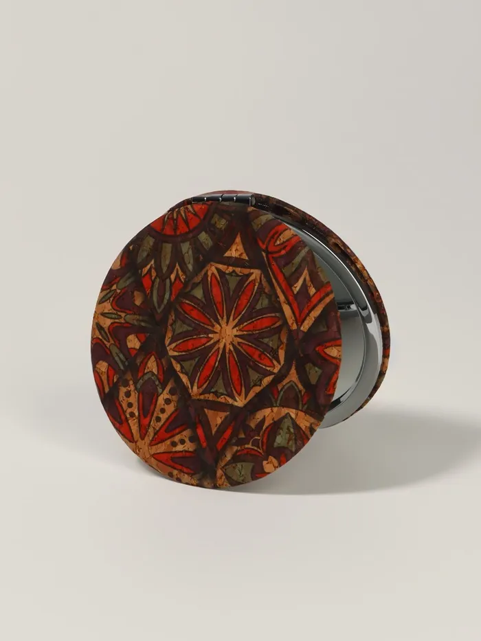 Зеркало складное «Орнамент», d=7.2 см, с увеличением х2, оранжевое