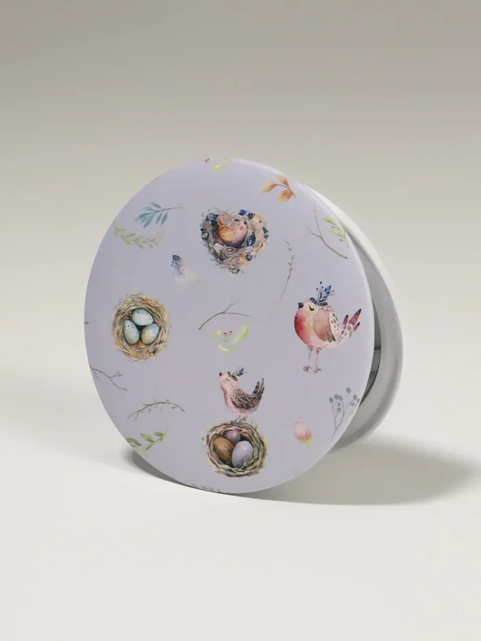 Зеркало складное «Птички», d=7.3 см, с увеличением х2,, сиреневое