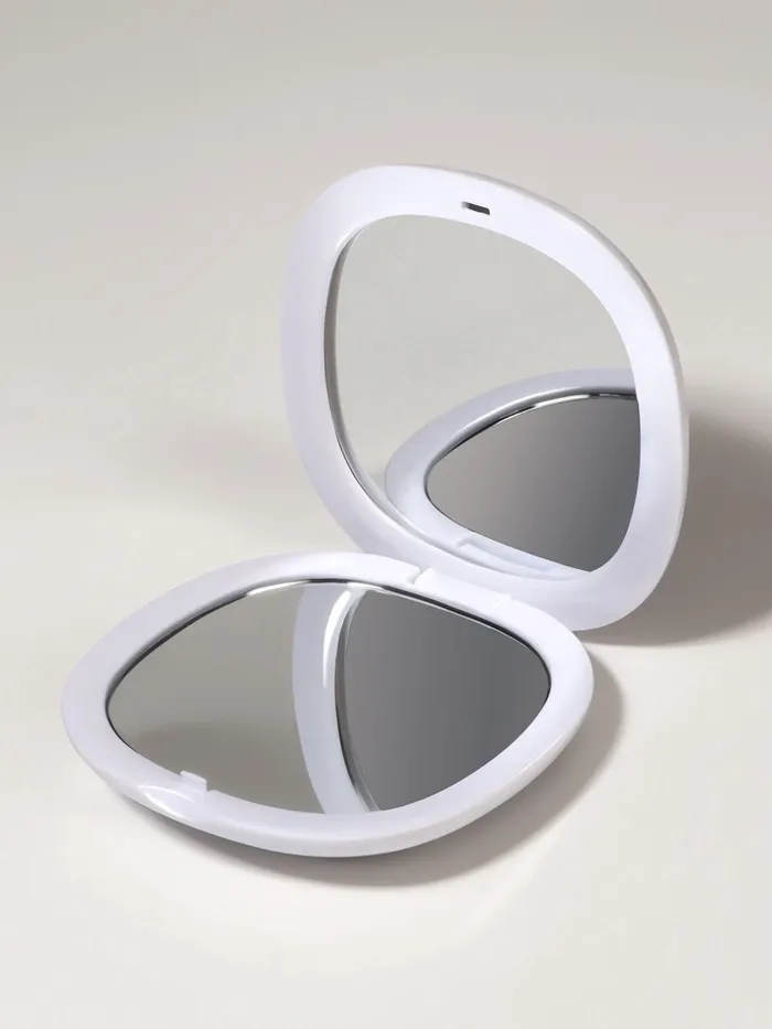 Компактное косметическое зеркало с двумя зеркальными поверхностями. Оно просто необходимо людям, использующим линзы на постоянной основе, чтобы при необходимости сразу устранить возникшую проблему. Карманный, дорожный вариант зеркала можно взять с собой в путешествие, поэтому вы сможете увидеть даже самые мелкие детали макияжа находясь в любой точке мира. Благодаря складному механизму зеркальная поверхность не повредится.