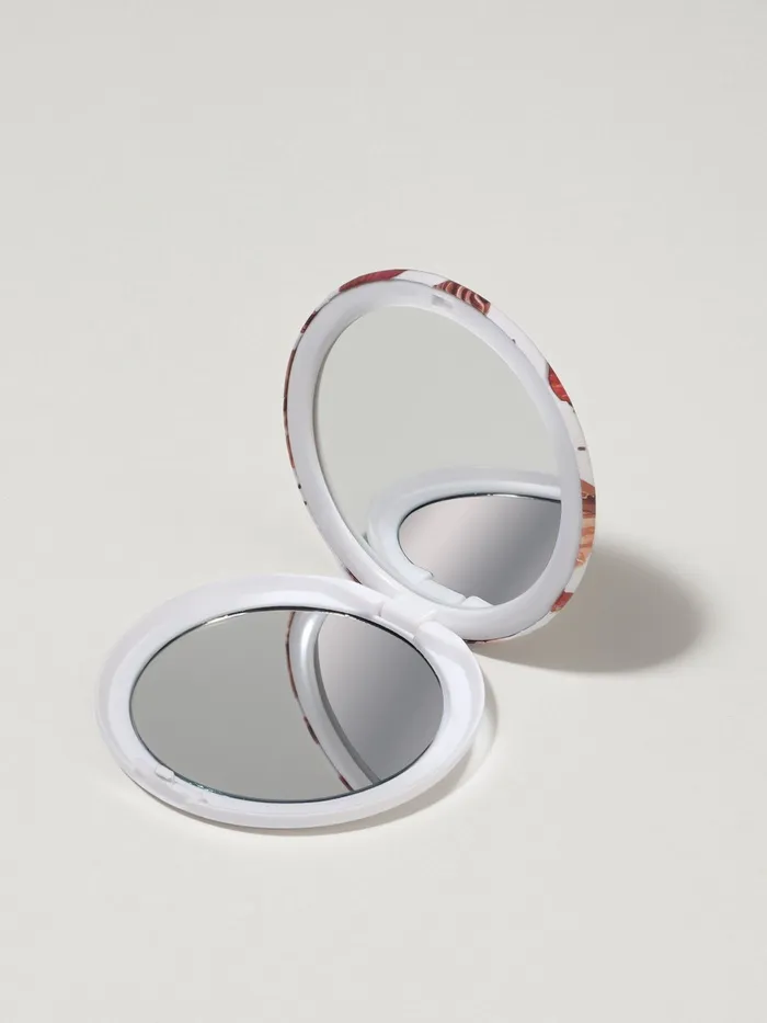 Зеркало компактное, не тяжелое, очень удобно для косметички и сумочки.Оно просто необходимо людям, использующим линзы на постоянной основе, чтобы при необходимости сразу устранить возникшую проблему. Карманный, дорожный вариант зеркала можно взять с собой в путешествие, поэтому вы сможете увидеть даже самые мелкие детали макияжа находясь в любой точке мира.
