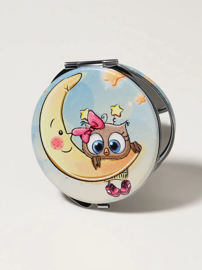 Зеркало складное «Совята», d=6 см, с увеличением х2, искусственная кожа, голубое — Характеристики