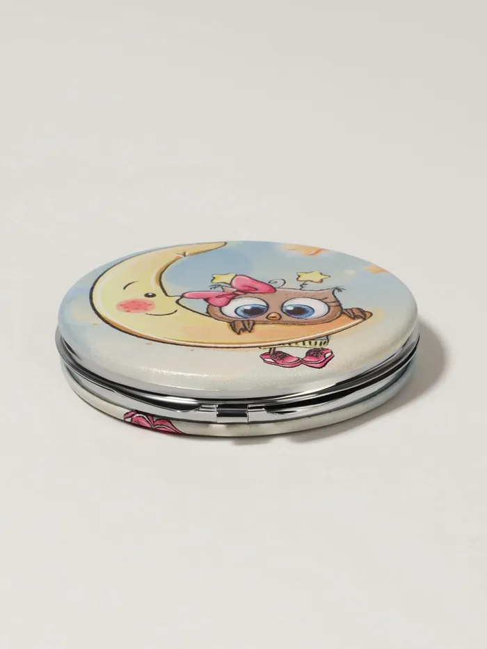 Зеркало складное «Совята», d=6 см, с увеличением х2, искусственная кожа, голубое