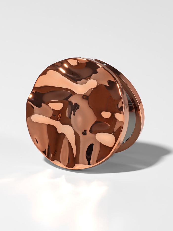 Компактное складное зеркало в оттенке розового золота — удобный и стильный аксессуар для ежедневного ухода за собой. Диаметр 7,5 см делает его оптимальным для использования в ванной комнате, косметическом столике или в дороге. Двойная зеркальная поверхность с увеличением помогает тщательно проработать детали макияжа или ухода за кожей, обеспечивая точное отражение без искажений.