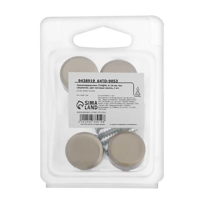 Зеркалодержатель ТУНДРА, d=20 мм, без сверления, цвет матовый никель, 4 шт. — Характеристики