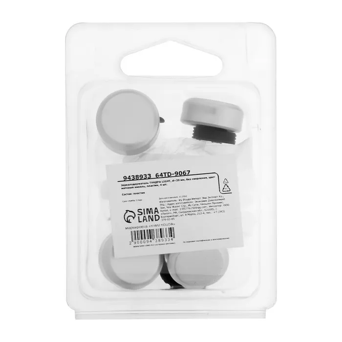 Зеркалодержатель ТУНДРА, d=20 мм, без сверления, цвет матовый никель, пластик, 4 шт. — Характеристики