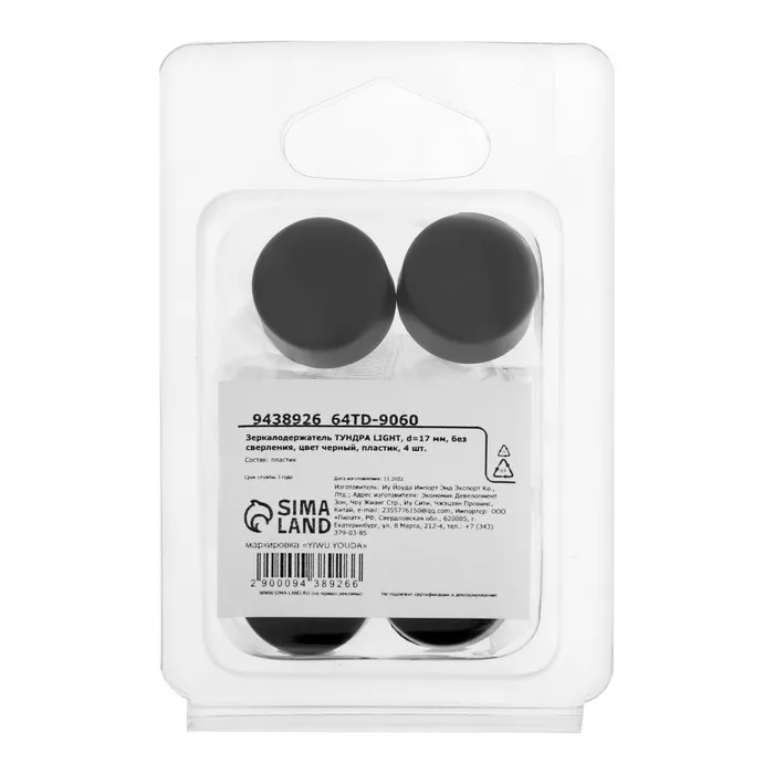 Зеркалодержатель ТУНДРА LIGHT, d=17 мм, без сверления, черный, пластик, 4 шт. — Характеристики