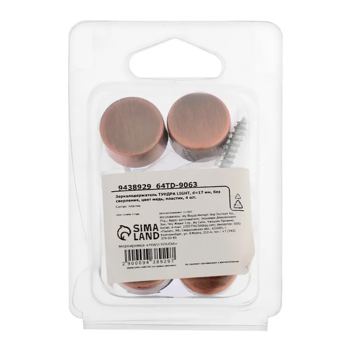 Зеркалодержатель ТУНДРА LIGHT, d=17 мм, без сверления, цвет медь, пластик, 4 шт. — Характеристики