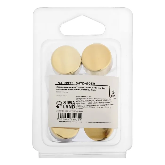 Зеркалодержатель ТУНДРА LIGHT, d=17 мм, без сверления, цвет золото, пластик, 4 шт. — Характеристики