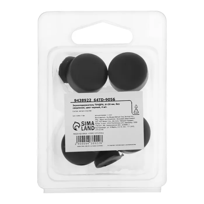 Зеркалодержатель ТУНДРА LIGHT, d=20 мм, без сверления, черный, 4 шт. — Характеристики