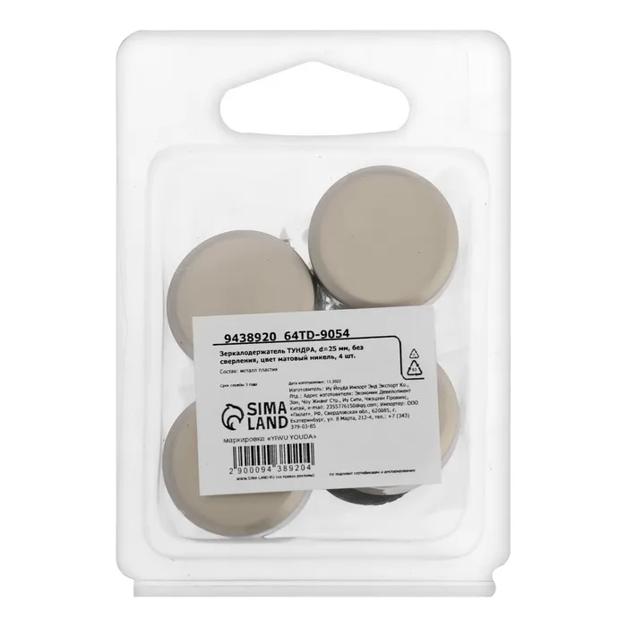 Зеркалодержатель ТУНДРА LIGHT, d=25 мм, без сверления, цвет матовый никель, 4 шт. — Характеристики