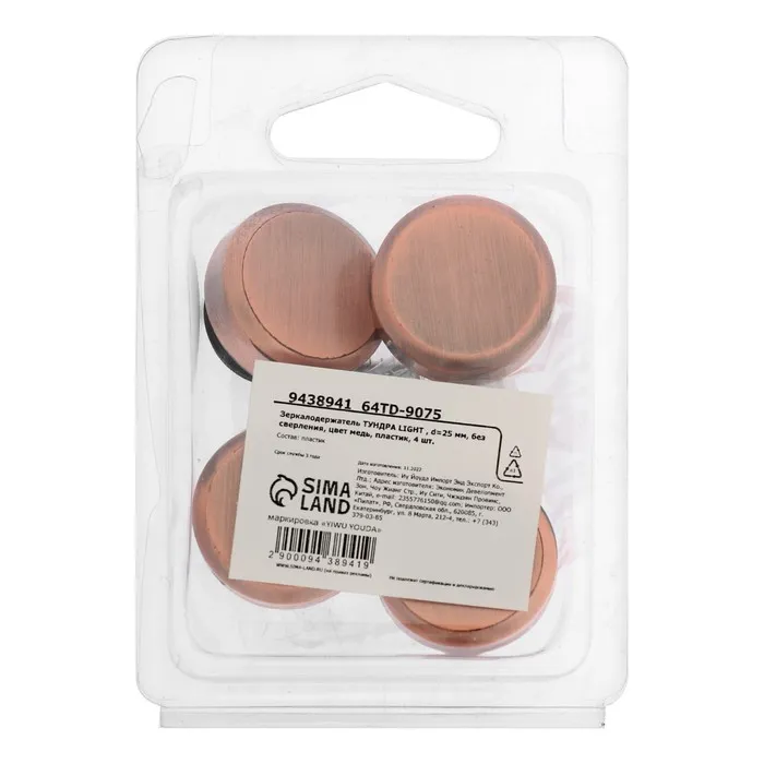 Зеркалодержатель ТУНДРА LIGHT, d=25 мм, без сверления, цвет медь, пластик, 4 шт. — Характеристики